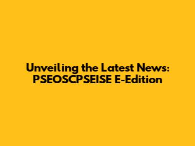 Unveiling The Latest News: PSEOSCPSEISE E-Edition