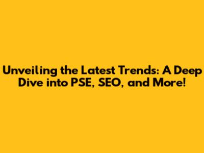 Unveiling The Latest Trends: A Deep Dive Into PSE, SEO, And More!