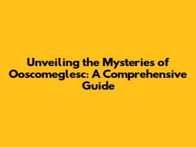 Unveiling The Mysteries Of Ooscomeglesc: A Comprehensive Guide