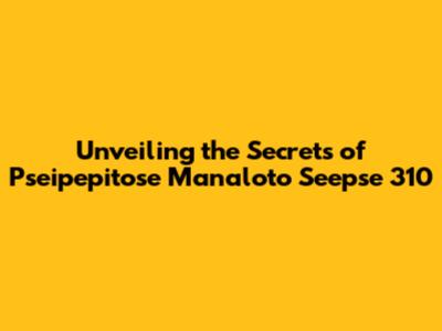 Unveiling The Secrets Of Pseipepitose Manaloto Seepse 310