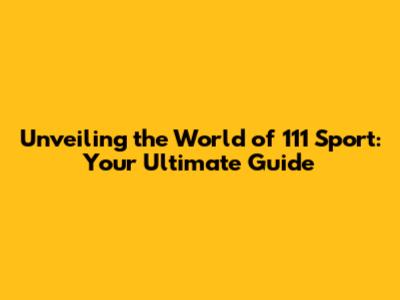 Unveiling The World Of 111 Sport: Your Ultimate Guide